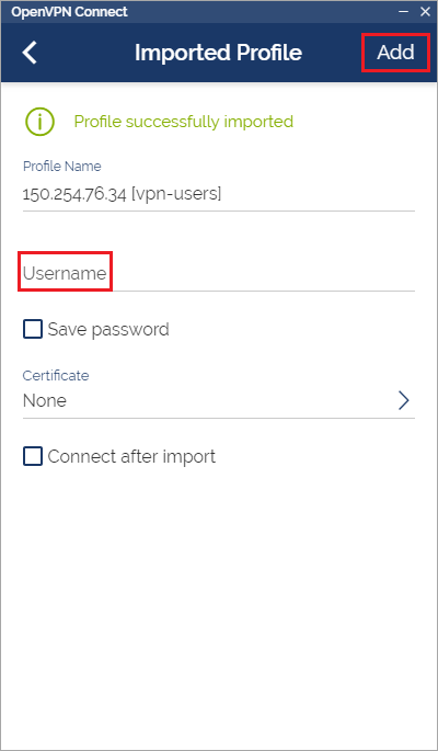Enter the username in the Username field and then select Add.